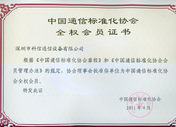 中国通信标准化协会全权会员证书
