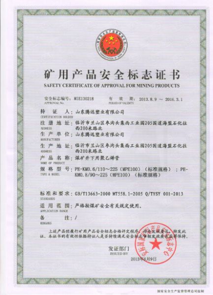 PE产品认证证书