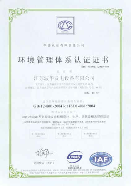 环境管理体系认证证书-中文